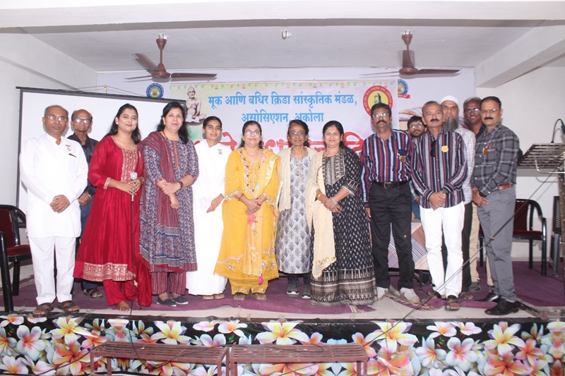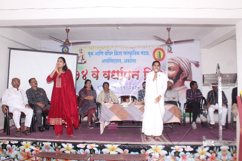 के पदाधिकारी एड संतोष भोरे, महा ई-सेवा केंद्र खामगांव के संचालक अब्दुल्ला खान, तथा प्रजापिता ब्रह्मकुमारी संस्थान की किरण दीदी आदि मान्यवर उपस्थित थे. दीप प्रज्वलन के साथ कार्यक्रम की शुरुआत हुई. वक्ताओं ने दिव्यांग वर्ग की समस्याओं पर प्रकाश डालते हुए मंडल द्वारा निरंतर किए जा रहे सामाजिक कार्यों की प्रशंसा की और शुभकामनाएँ दीं. कार्यक्रम के दौरान वरिष्ठ, मेहनती और वृद्ध मूक-बधिर व्यक्तियों का सम्मान किया गया तथा मूक-बधिर कलाकारों द्वारा सांस्कृतिक कार्यक्रम प्रस्तुत किया गया. मंडल के चेयरमैन पंकज जायले ने संस्था की गतिविधियों की जानकारी