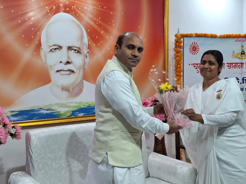 - बीके शिवलाल का स्वागत करते हुये राजयोगिनी अर्चना दीदी
